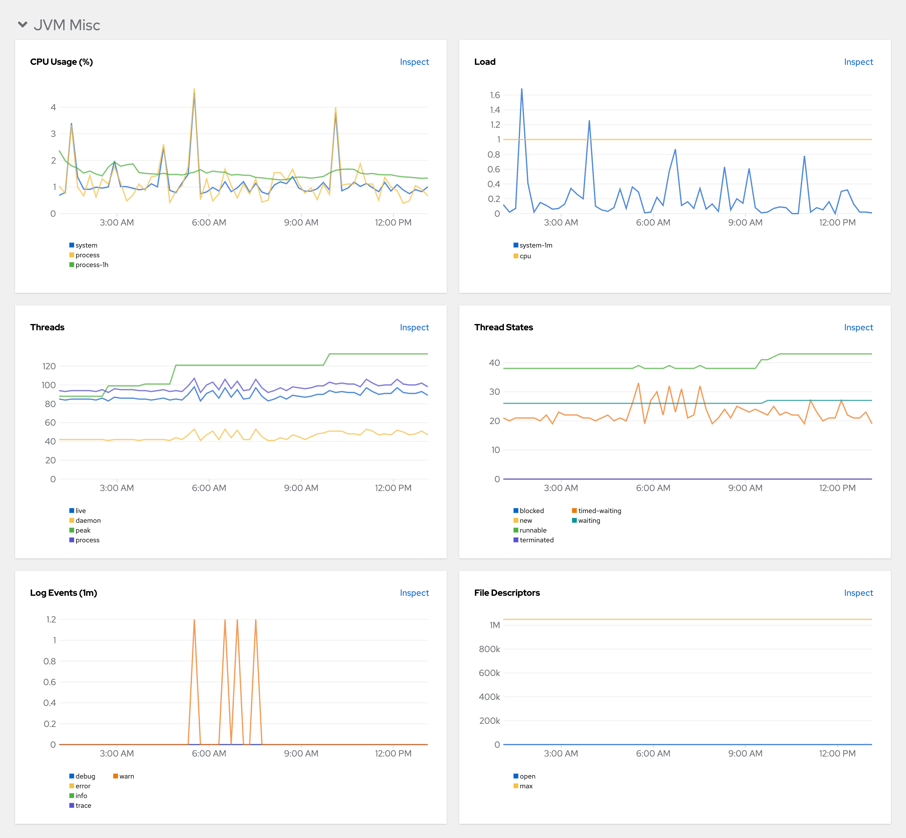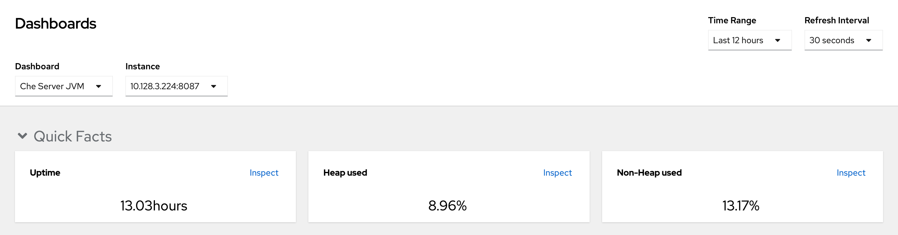 Go to Dashboard → Che Server JVM and verify that the dashboard panels contain data.